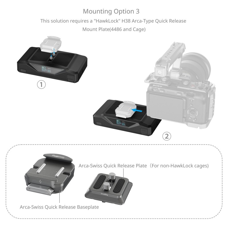 - Kompatibel mit Arca-Swiss Schnellwechselplatten (z.B. SmallRig HawkLock H38, SKU: 4486)