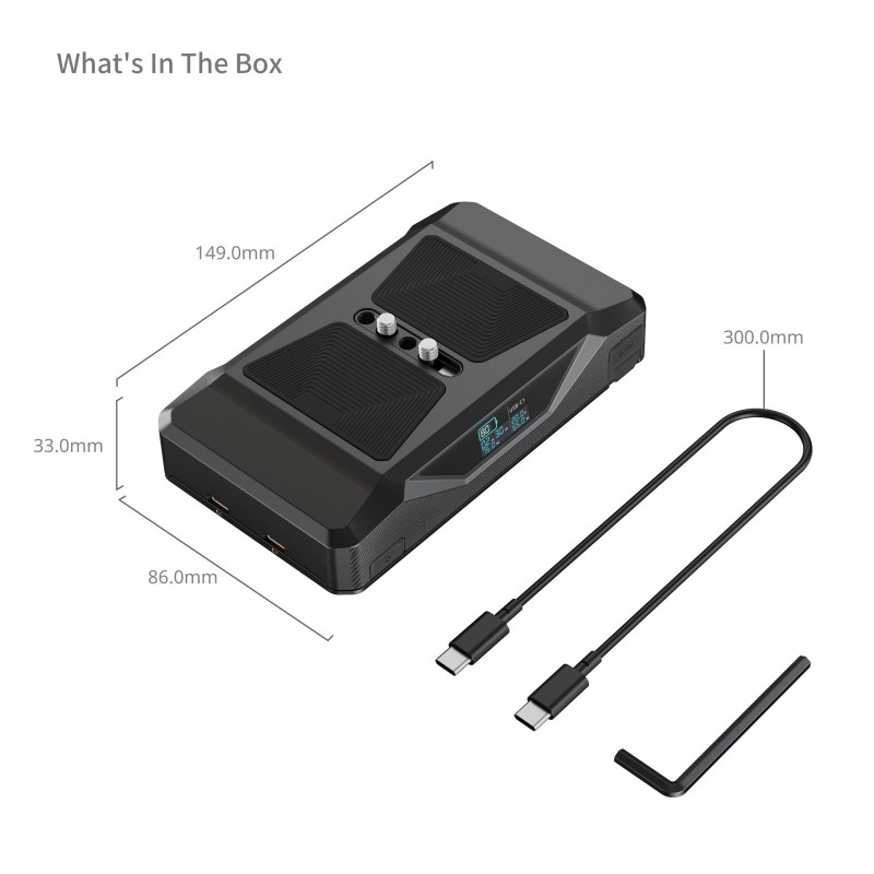 - Versorgt zahlreiche professionelle Zubehörteile (Monitore, Rekorder, Kameras, etc.) über D-Tap, USB-C oder DC mit Strom