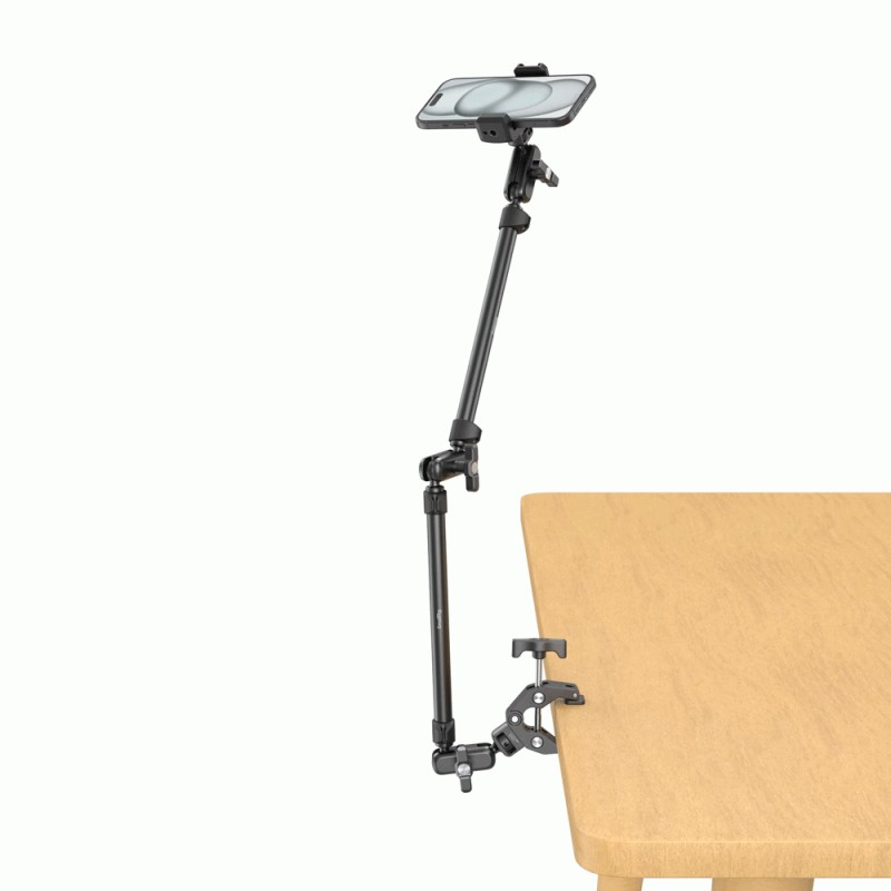 Magischer Arm-Kit SmallRig mit krabbenförmiger Klemme für den Schreibtisch, ideal für Smartphones, Webcams und Action-Kameras. Länge von 57 cm, sicherer Halt, integriertes Kabelmanagement. Kompatibel mit Geräten von 60 bis 95 mm Breite. Maximale Traglast 1 kg.Empfänger :