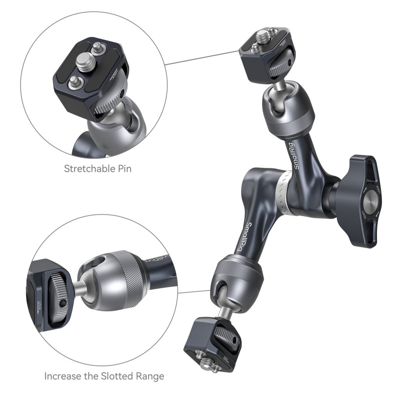 Der SmallRig-Schwenkarm mit Rosette von 18 cm bietet eine robuste und flexible Befestigung für Ihr Foto- und Videozubehör. Konstruktion aus Luftfahrt-Aluminium und Anti-Torsions-Stift.Empfänger :