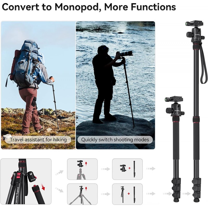 SmallRig CT-20 Stativ aus Aluminium, robust, vielseitig und leicht, ideal für unterwegs für Foto und Video. Umwandelbar in ein Einbeinstativ. Maximale Belastung 15 kg, inklusive 2 Schnellwechselplatten.Empfänger :