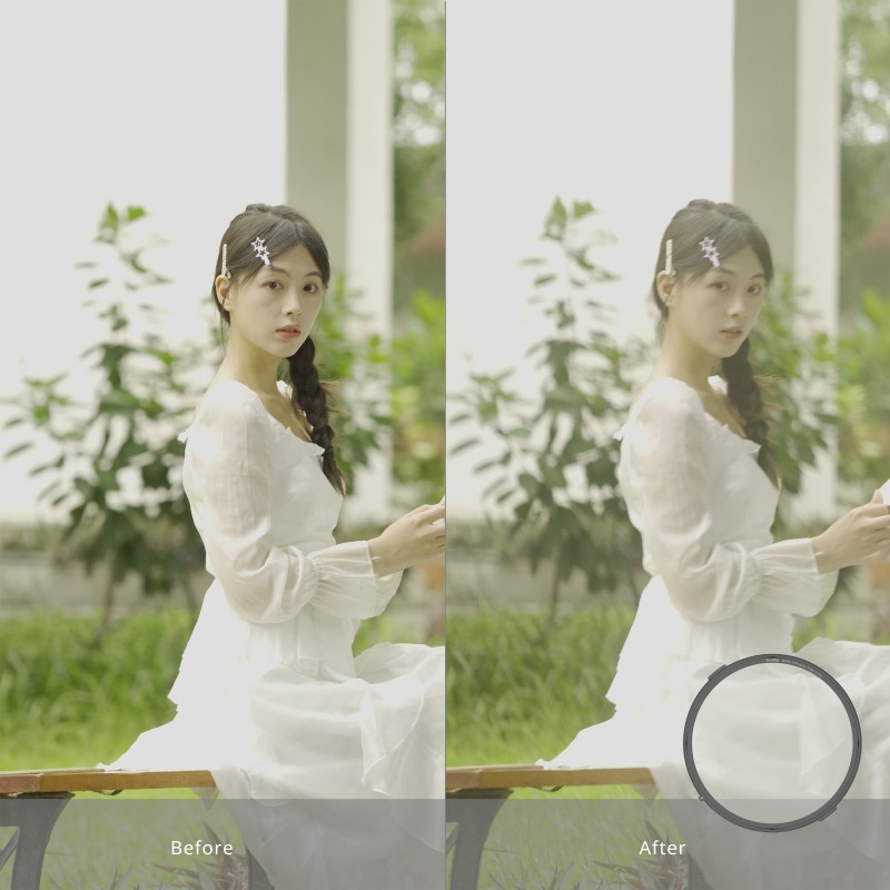 - Weisser Diffusionseffekt: Weicht die Highlights auf und bietet eine weiche und schmeichelhafte Bildwiedergabe.