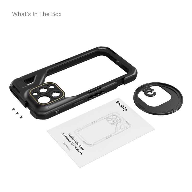 Cage vidéo mobile multifonctionnelle SmallRig pour iPhone 15 Pro Max, conçue pour le tournage, le streaming et le vlogging. Compatible avec objectifs M-mount, 17mm/37mm filetés et Moment T-series. Léger, accès complet aux boutons et MagSafe. - 4391BDestinataire :