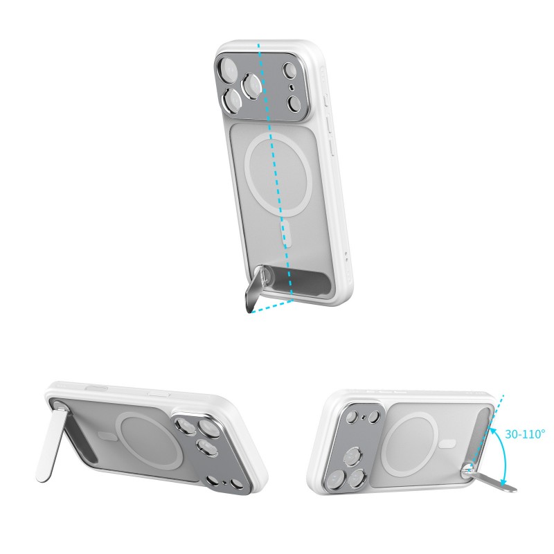 Coque photo légère SmallRig FilMov pour iPhone 17 Pro Max (blanc). Système de plaque arrière à changement rapide pour objectifs, supporte les filtres magnétiques 67mm (adaptateur en option), compatibilité MagSafe et support intégré multi-angle. Protection optimale pour la photographie mobile.Destinataire :