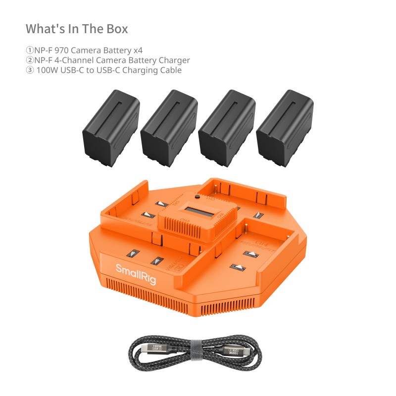 Le kit SmallRig chargeur de batterie à 4 canaux et 4 batteries NP-F970 est la solution idéale pour les professionnels de l'image en quête de puissance et d'efficacité.