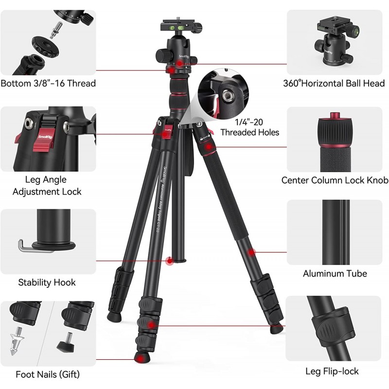 Le trépied SmallRig CT-20 en alliage d'aluminium est le compagnon incontournable des photographes et vidéastes exigeants. Solide, léger et d'une grande polyvalence, il garantit une stabilité optimale pour vos appareils, que ce soit en studio ou en extérieur. Grâce à sa compatibilité universelle et à ses fonctionnalités innovantes, il s'adapte à tous vos besoins créatifs, du paysage à la macro, en passant par la vidéo et la photographie de voyage.